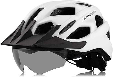 This super cool helmet comes in multiple colors including, black-red, black white, blue, metal blue, navy blue, red, silver, ti, and white. Overall, this helmet with a visor and goggles is a perfect fit for mountain bike and road bike cycling.